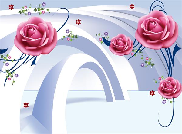 تصویر سه بعدی و گلهای برجسته صورتی