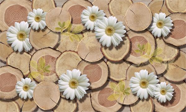 پس زمینه تنه درخت و گلهای سفید