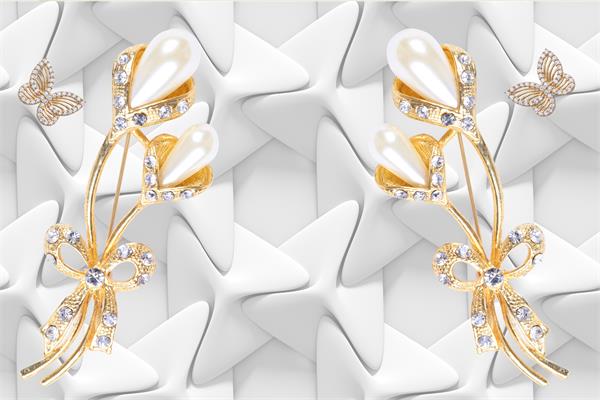 پس زمینه سه بعدی سفید وگلهای برجسته نگین دار