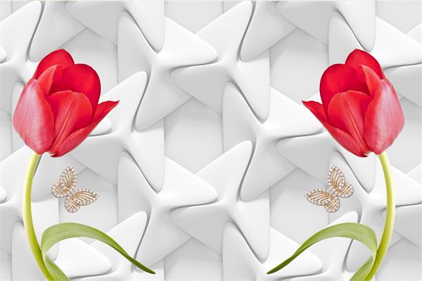 پس زمینه سه بعدی سفید وگلهای برجسته لاله