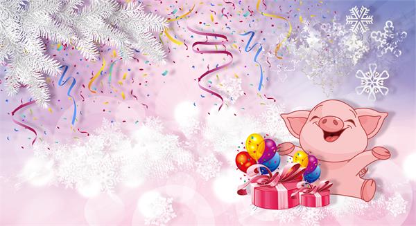پس زمینه بنفش و خوک برجسته کارتونی