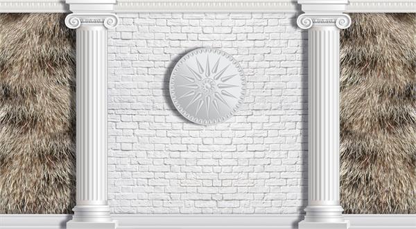 آجر نما و دایره برجسته سفید بین دو ستون