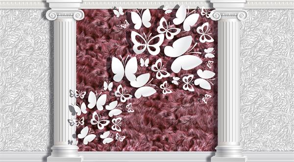 تصویر برجسته پروانه سفید بین دو ستون
