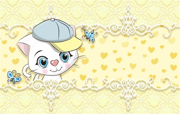 پس زمینه قلبی زرد با گربه برجسته کودکانه