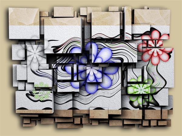 طرح فانتزی از شاخه با گل های رنگارنگ