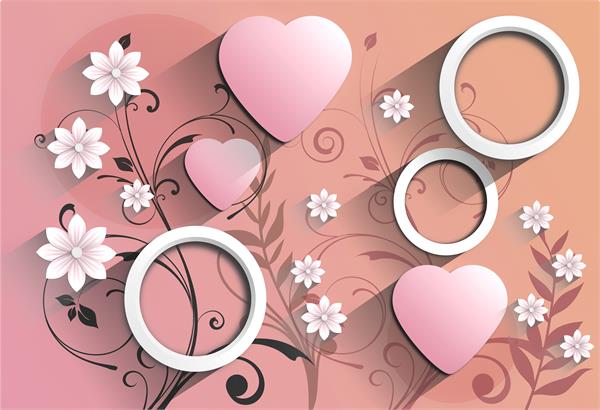 پس زمینه صورتی با طرح دایره گل و قلب سه بعدی