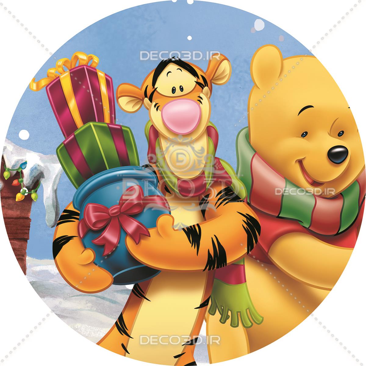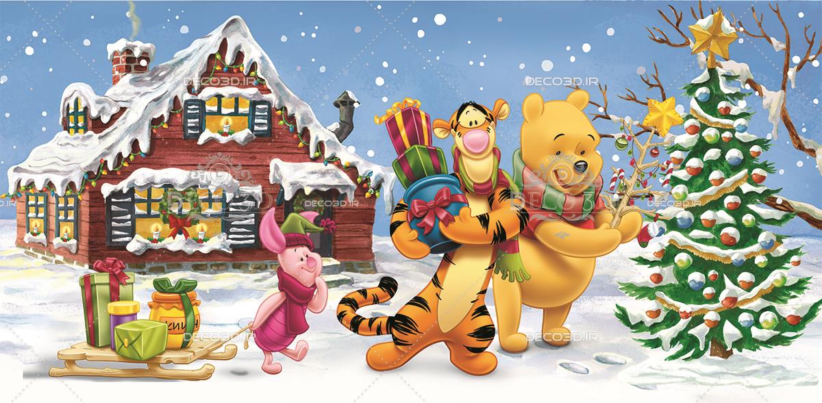 وینی د پو در میان برف ها با درخت کریسمس