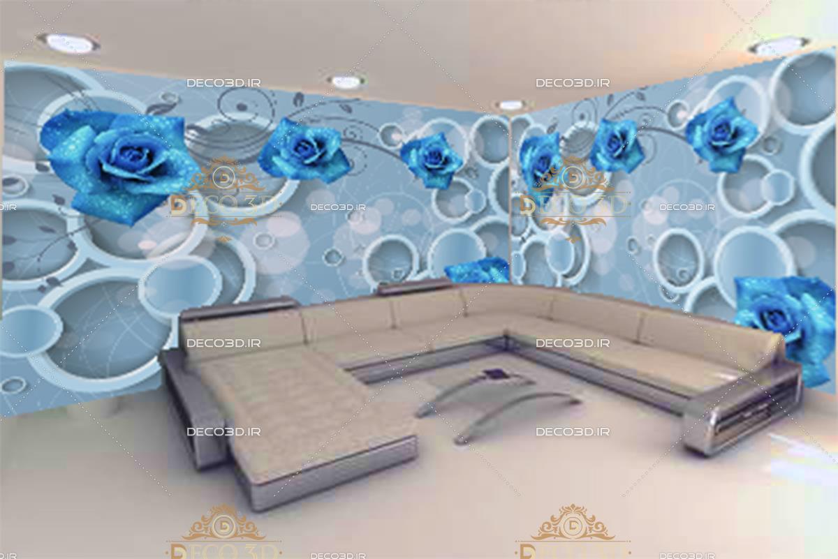 گلهای رز آبی با قطرات آب و حلقه های سه بعدی