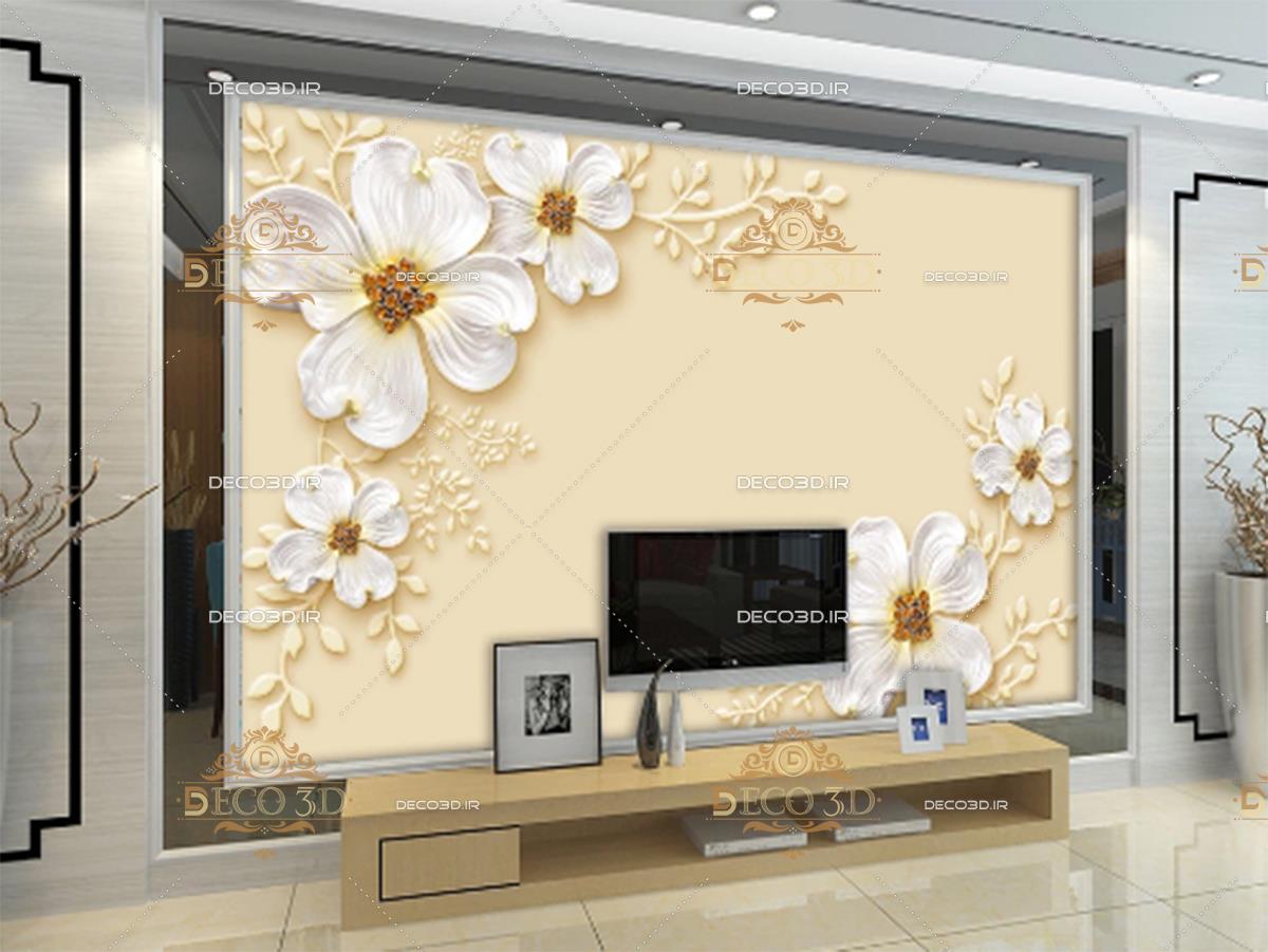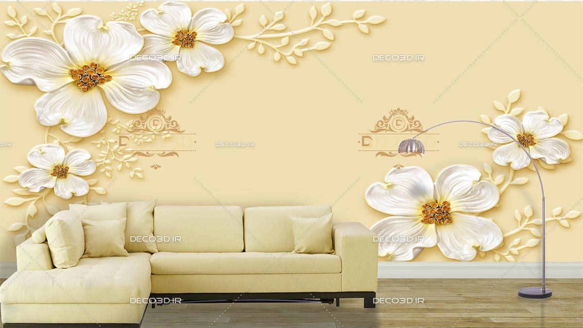 گلهای سفید برجسته با زمینه کرمی