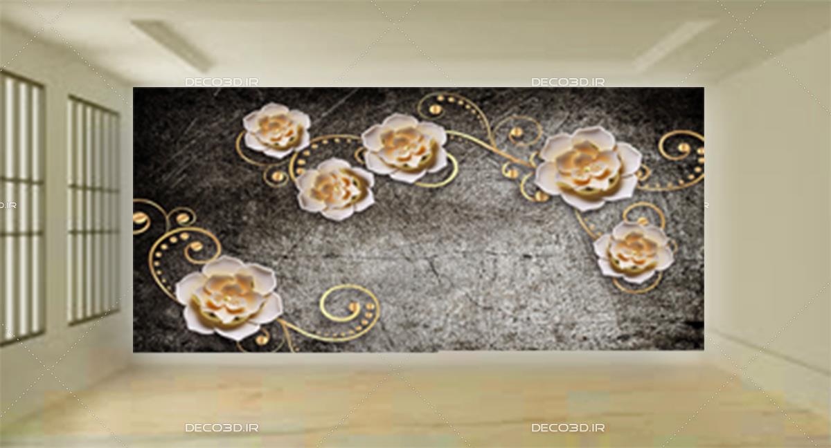 نقوش اسلیمی و گلهای رز صورتی برجسته