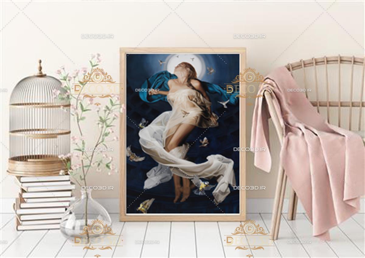 نقاشی زن در مهتاب و پرواز پرنده ها