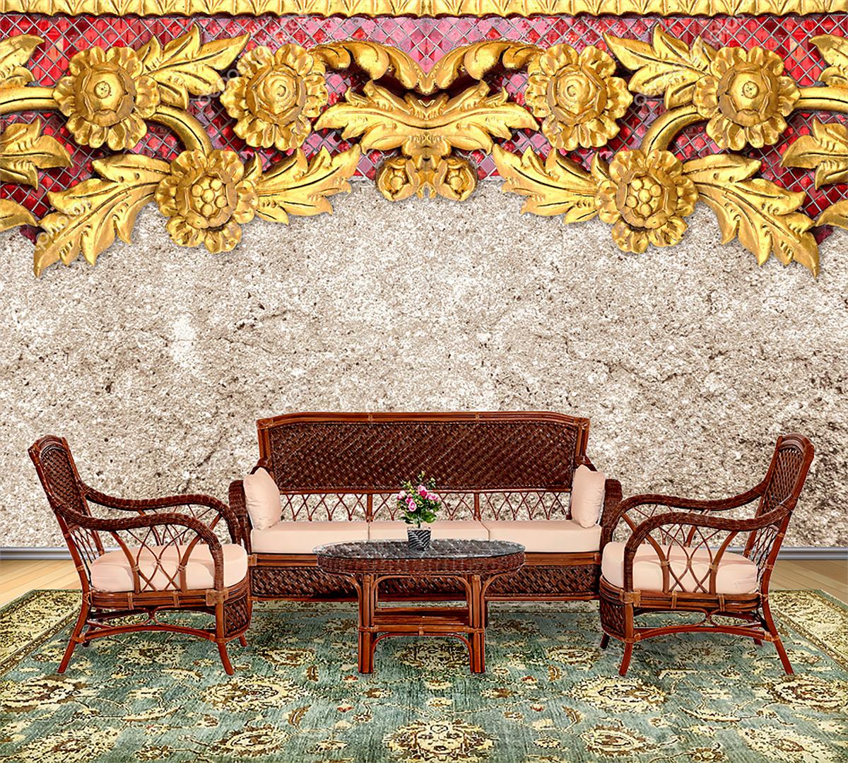 دیوار سنگی با طرح گلهای برجسته طلایی