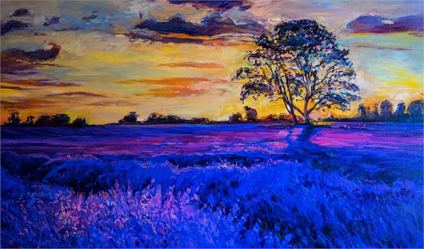 غروب مزرعه تک درخت