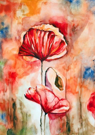 نقاشی آبرنگی گل قرمز