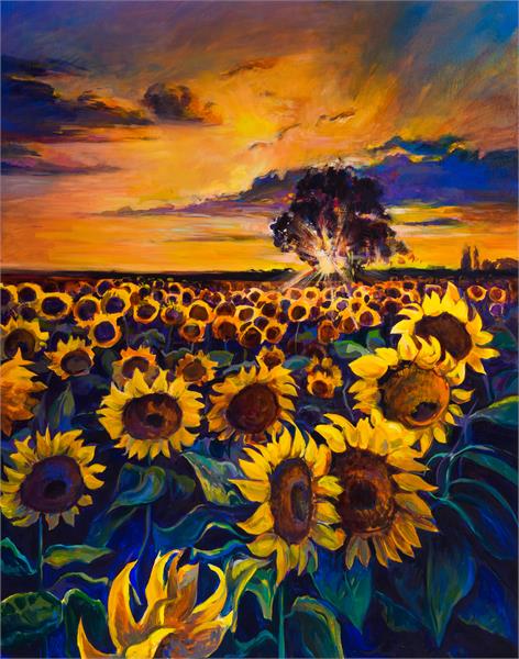 نقاشی دشت مملو از گلهای آفتابگردان