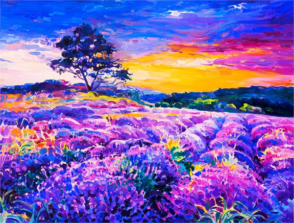 نقاشی آسمان و درخت در طبیعت