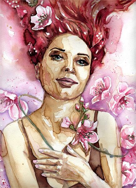 نقاشی دختر زیبا با رنگ صورتی