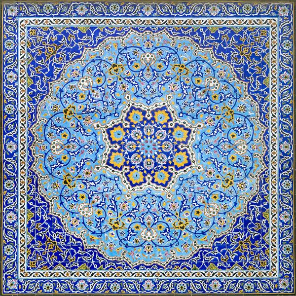 کاشی کاری اسلیمی منتظم با زمینه لاجوردی