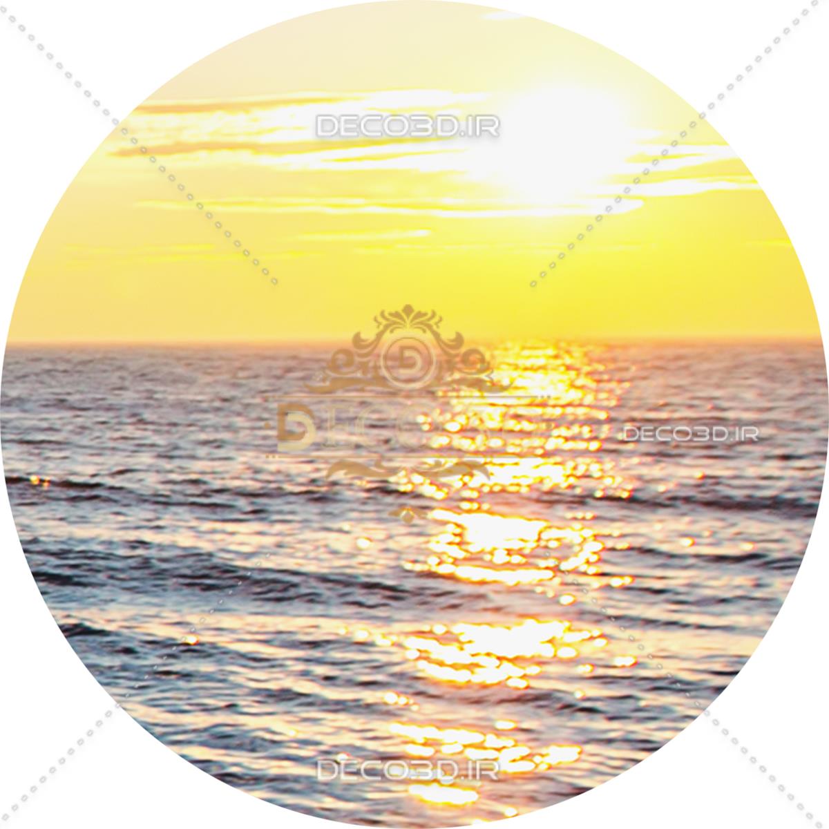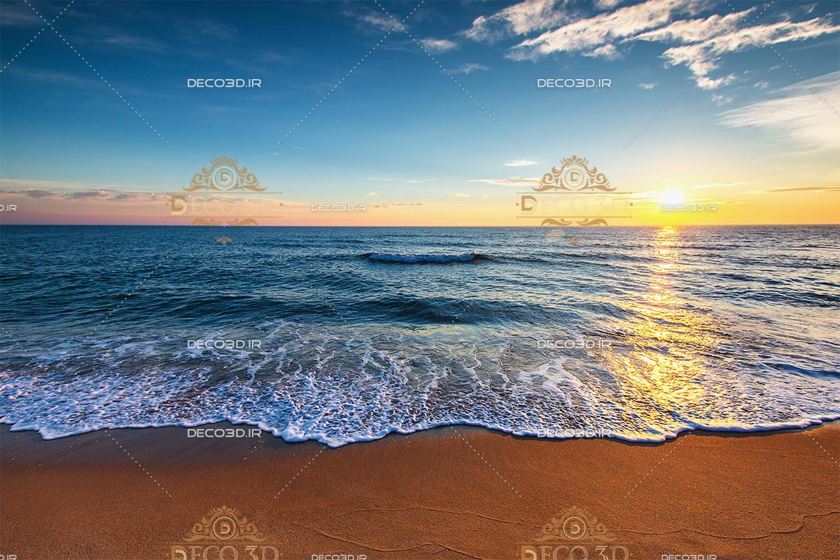 دریا با موجهای آرام و غروب خورشید در افق