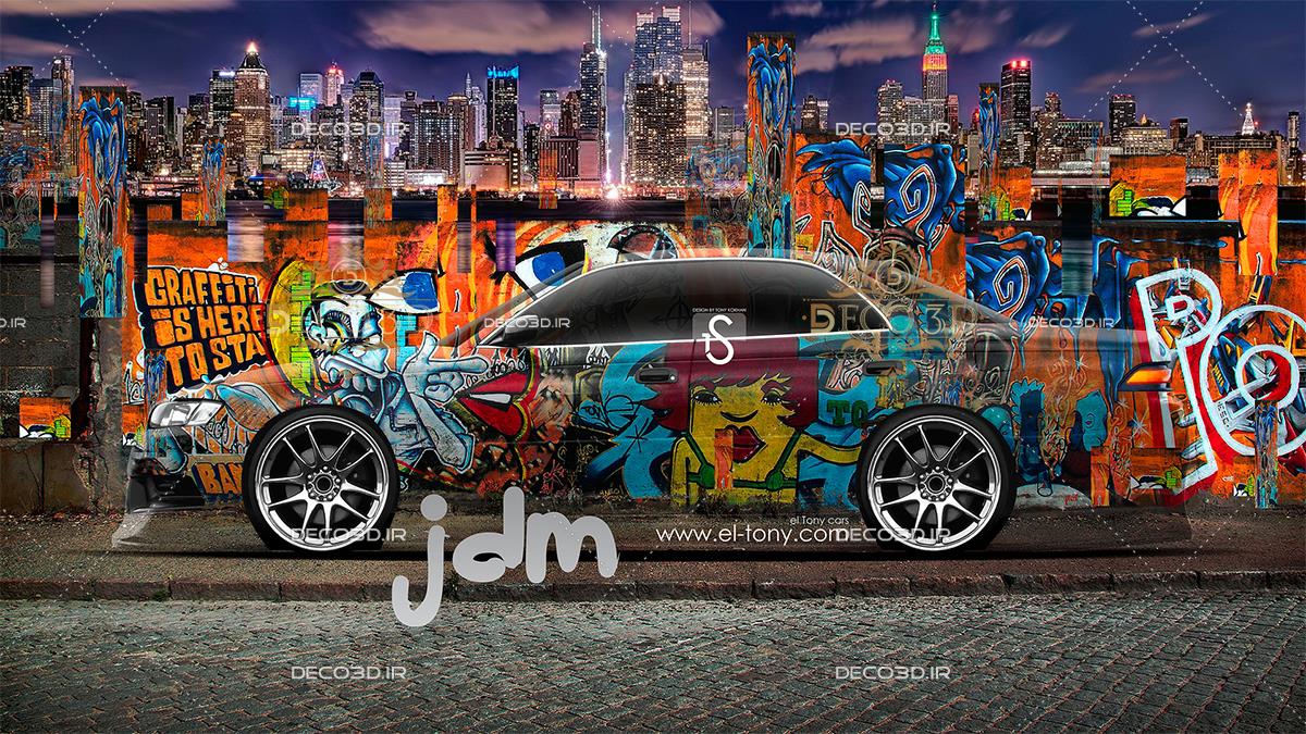 ماشین اسپورت رنگی و نمای شهر