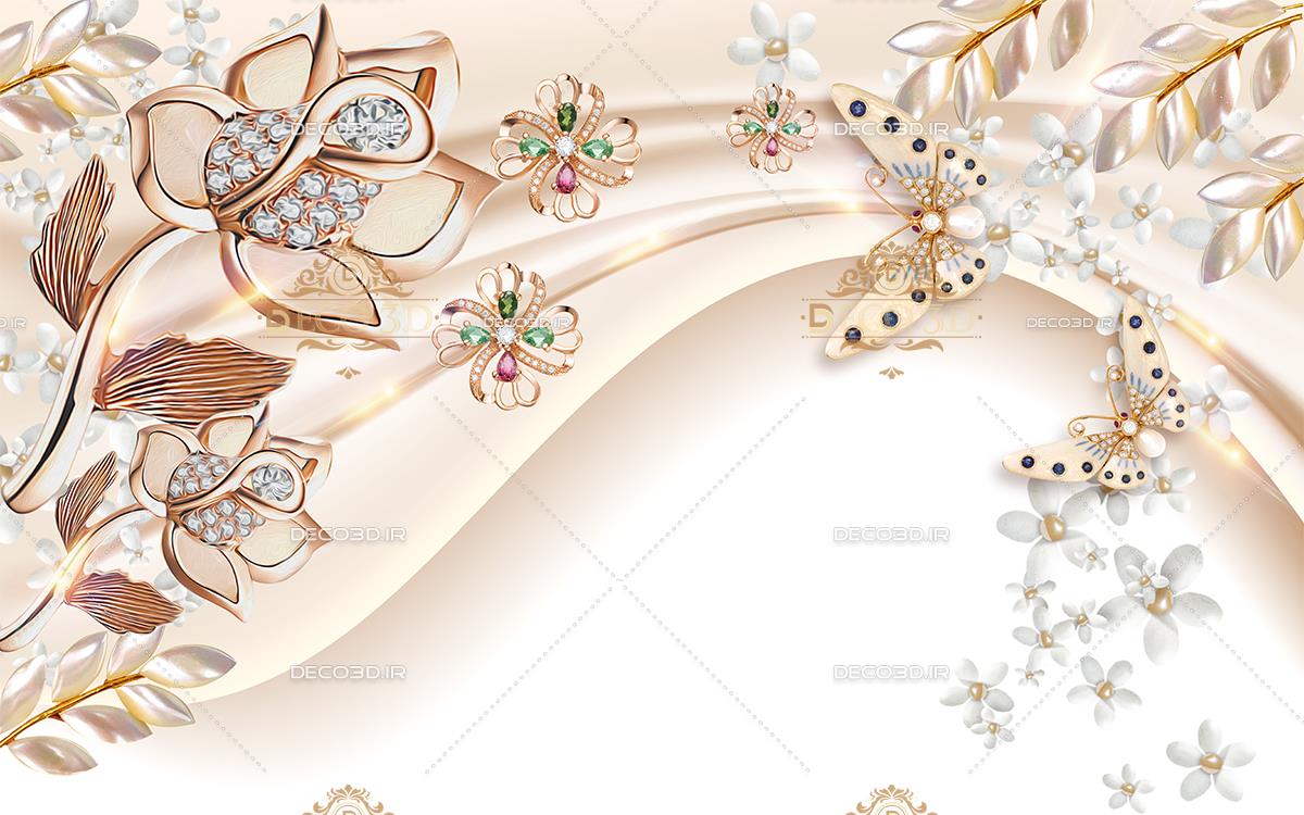 گلها و پروانه های سه بعدی کرمی جواهرنشان
