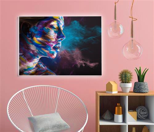 پرتره نیم رخ زن با میکاپ رنگارنگ و دود