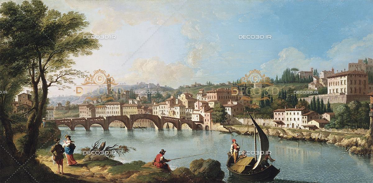 نقاشی کلاسیک از سایت گتی ایمیج(رودخانه و روستا)