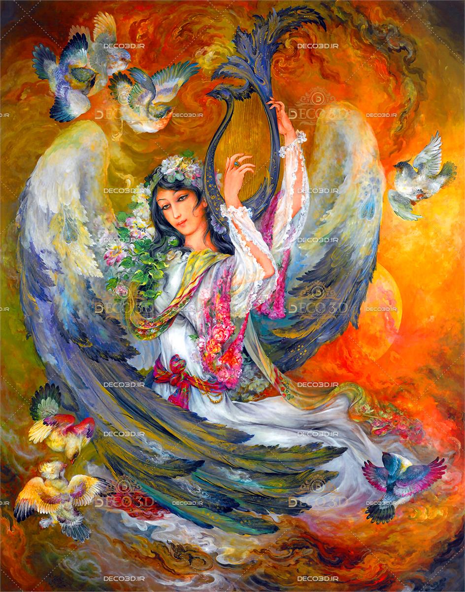 نقاشی مینیاتوری ایرانی اثر استاد فرشچیان (الهه شعر و موسیقی )
