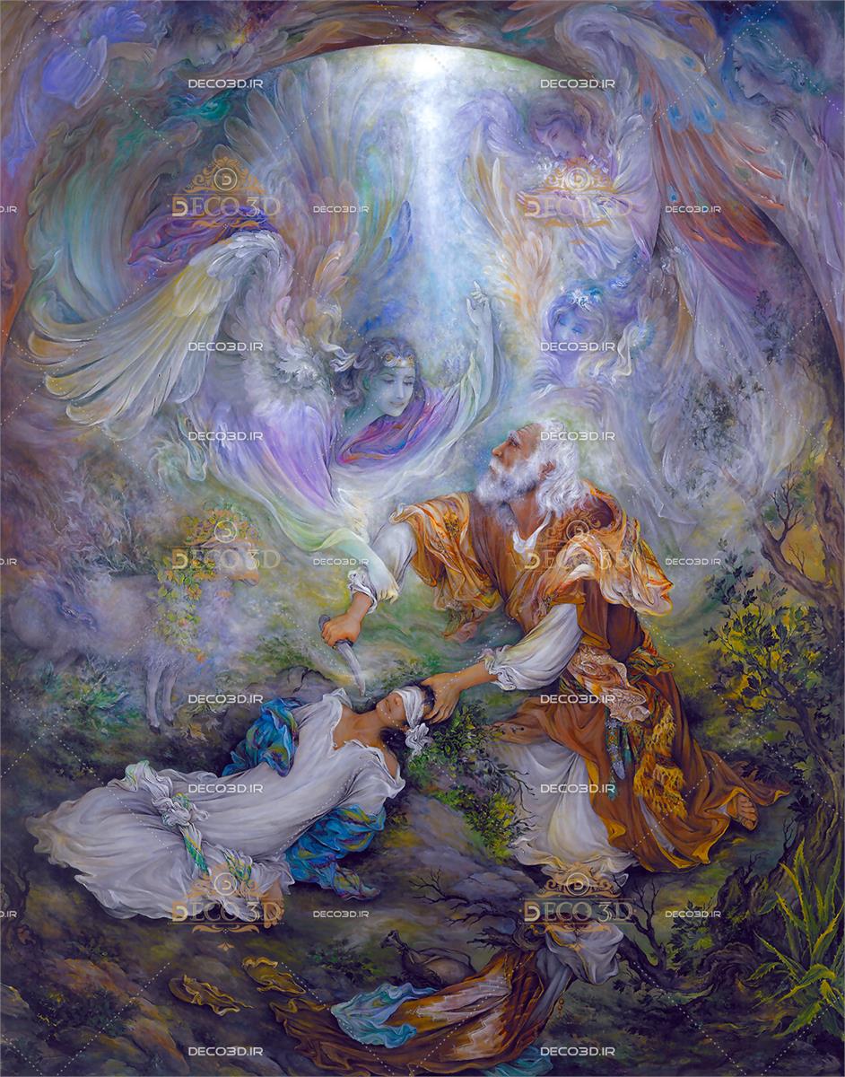نقاشی مینیاتوری ایرانی اثر استاد فرشچیان (حضرت اسماعیل (صلح دریا با او))