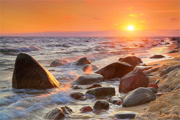 دریا و سنگ های بزرگ در غروب خورشید از وب سایت آلامی - faa679