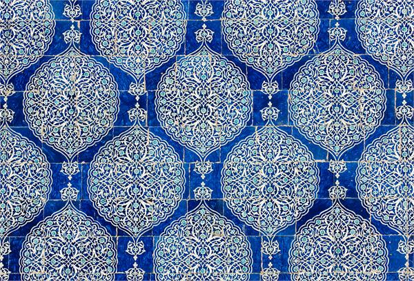 کاشی کاری اسلیمی منتظم با زمینه لاجوردی
