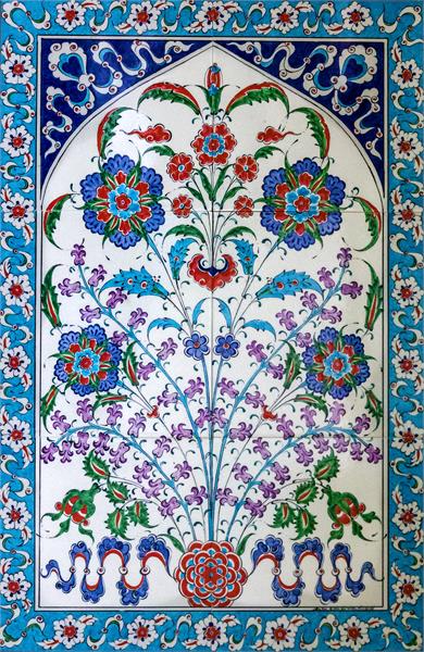 کاشی کاری محرابی گل و بوته با زمینه سفید
