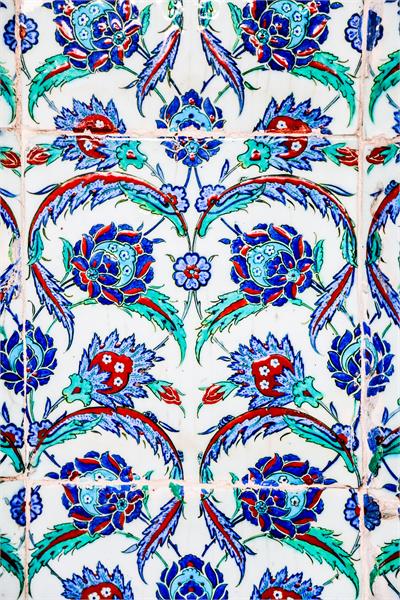 کاشی کاری اسلیمی و ختایی با زمینه سفید