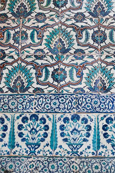 کاشی کاری اسلیمی و ختایی با زمینه سفید