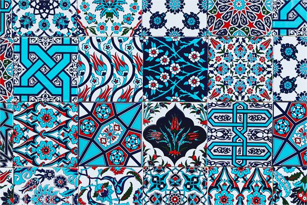 کاشی کاری مربعی با نقش متنوع