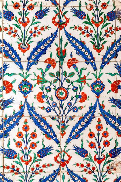 کاشی کاری با نقوش گل و برگ