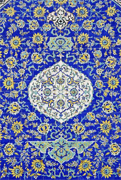 کاشی کاری طلایی با زمینه آبی