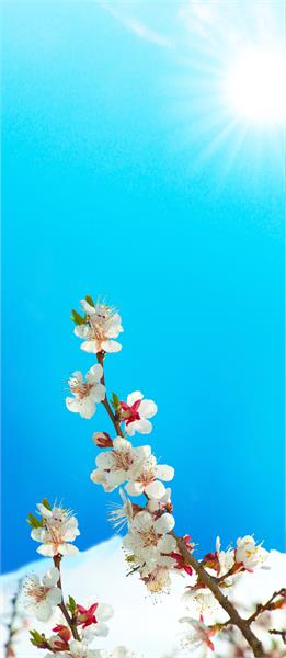 آسمان آفتابی و درخت بهاری صورتی