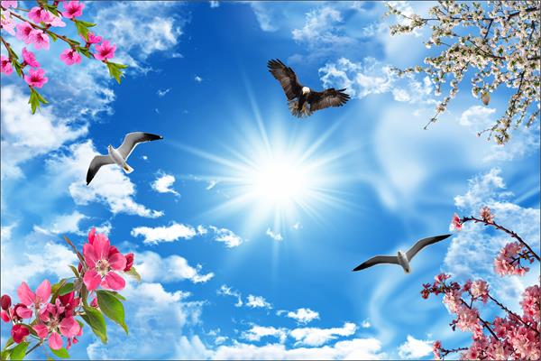آسمان نورانی و پرنده ها