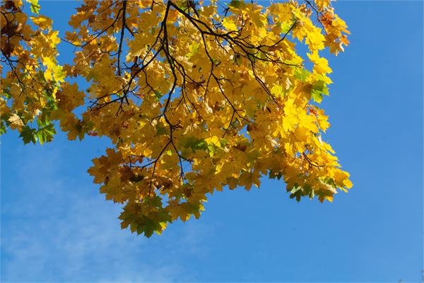 شاخه درخت پاییزی و آسمان آبی