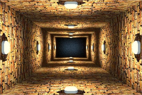 تونل مکعبی با نمای آجرهای کرم و چراغ های سفید