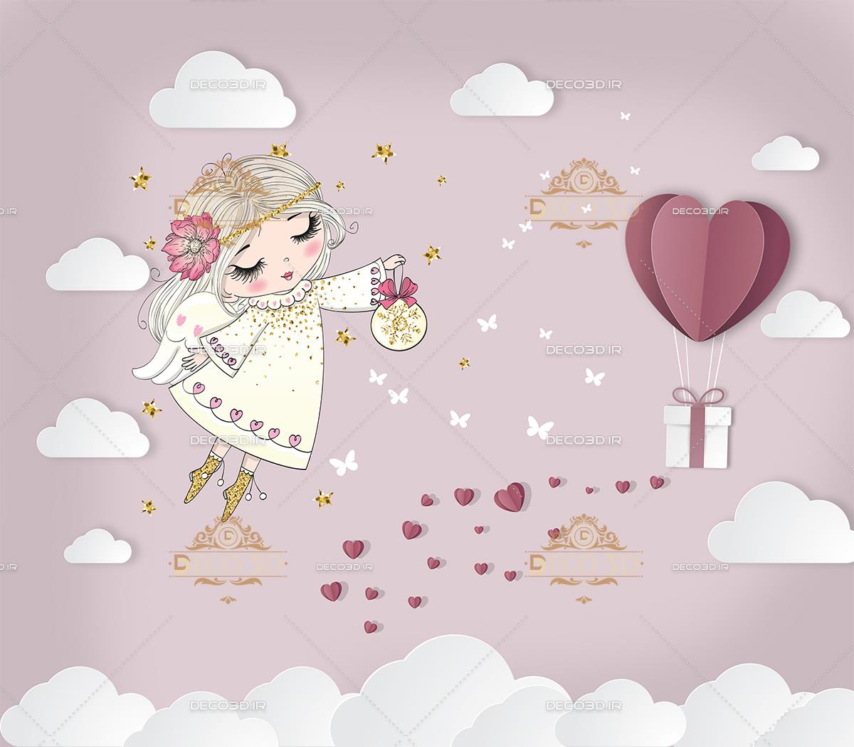فرشته کوچولو و پروانه ها با کادو میان ابرها