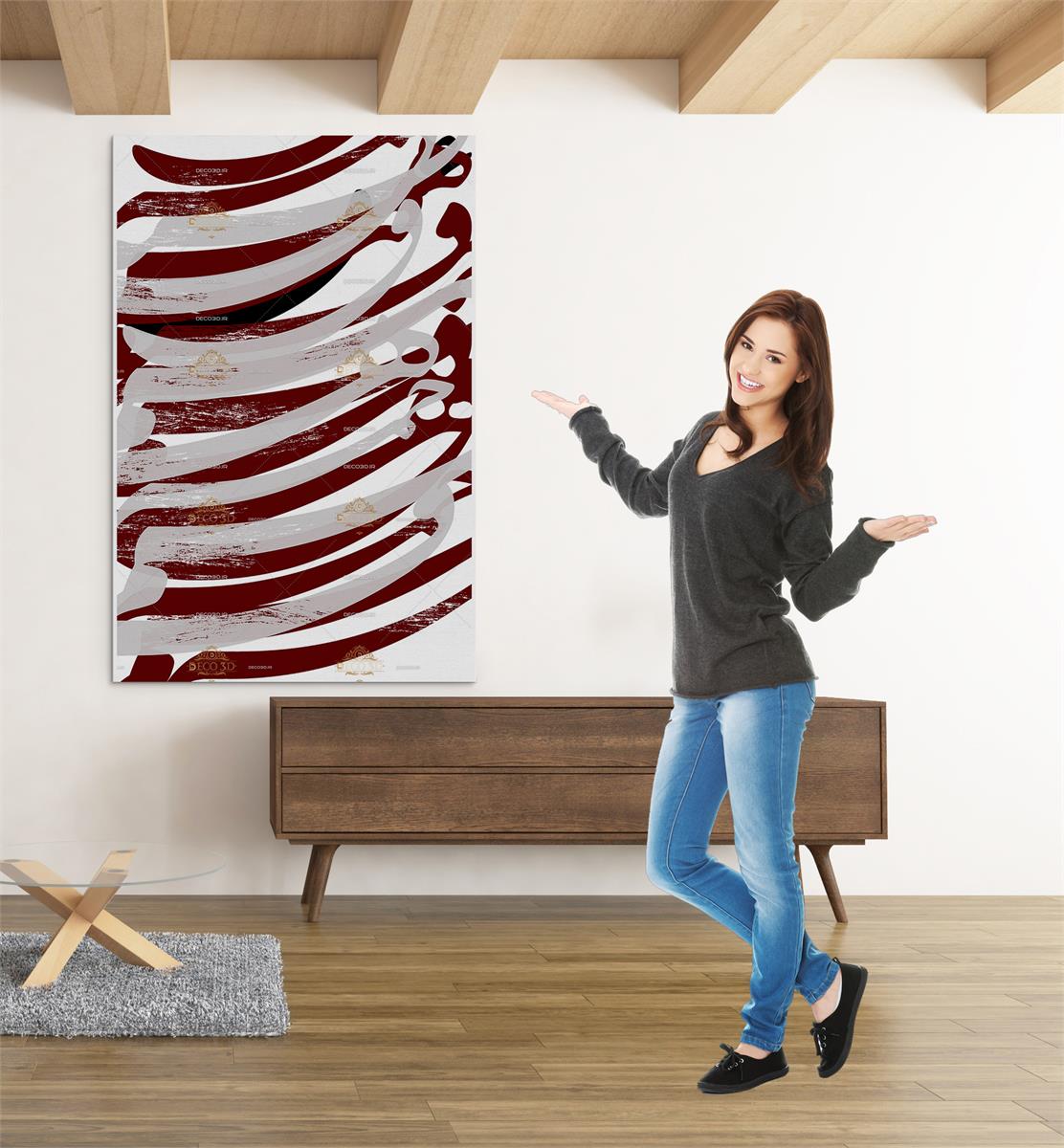 سیاه مشق خط شکسته نستعلیق حروف انتزاعی قرمز و سفید