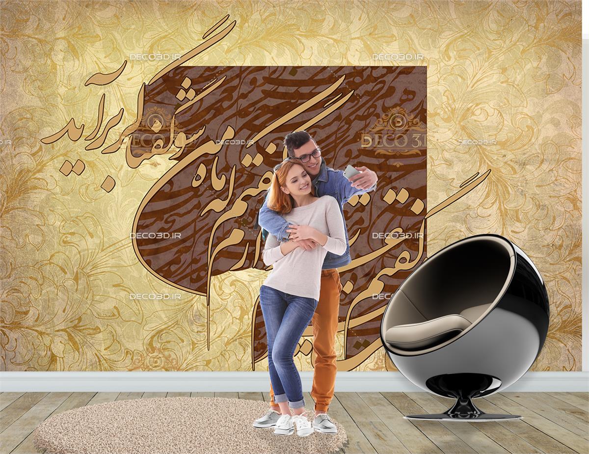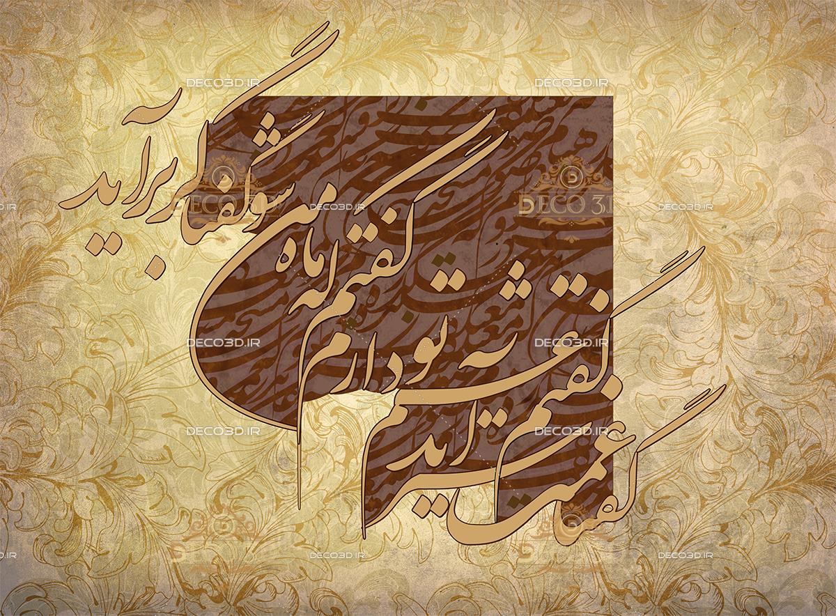 کالیگرافی شعر «گفتم غم تو دارم...» با خط شکسته نستعلیق و زمینه پترن گل