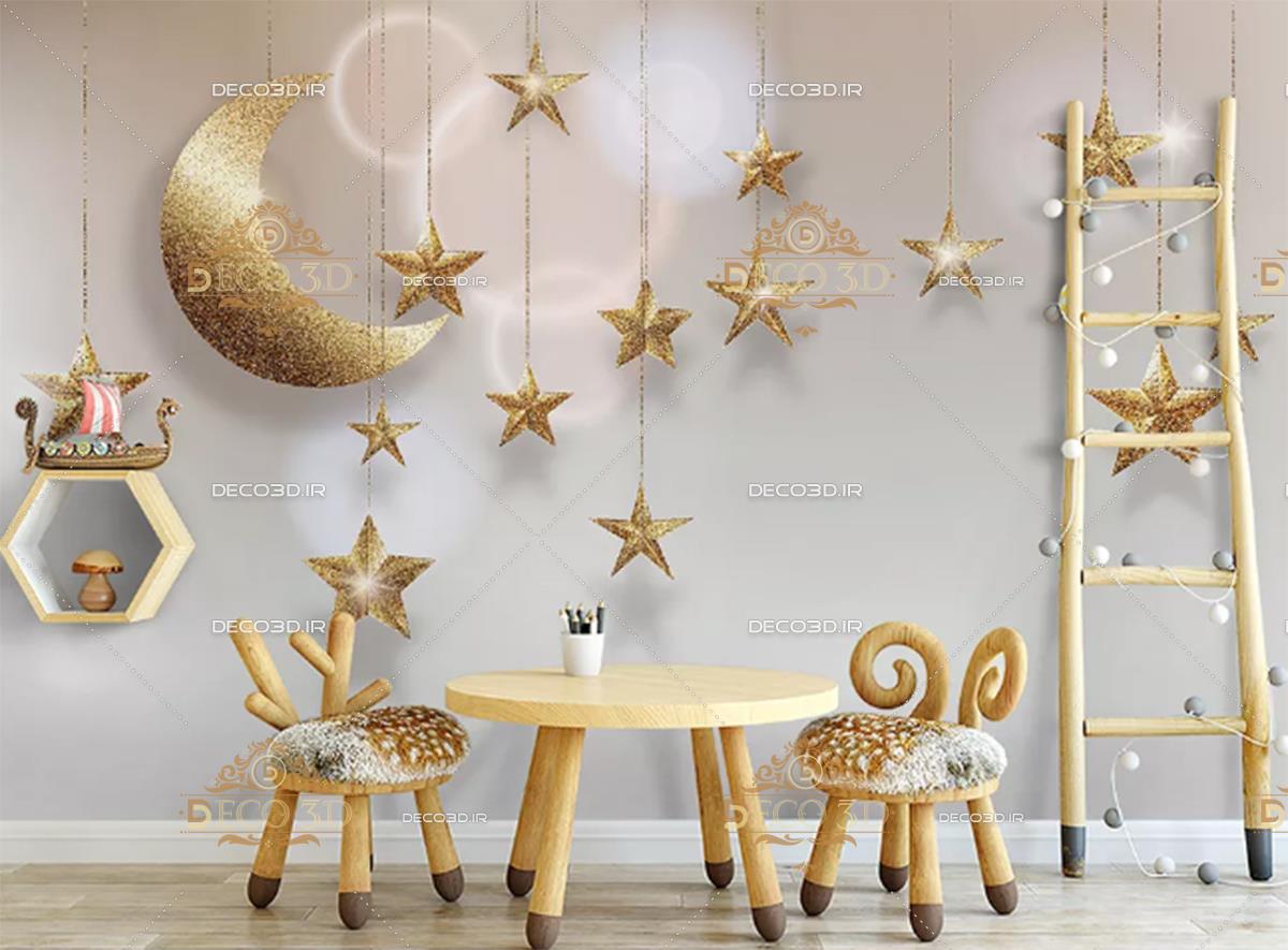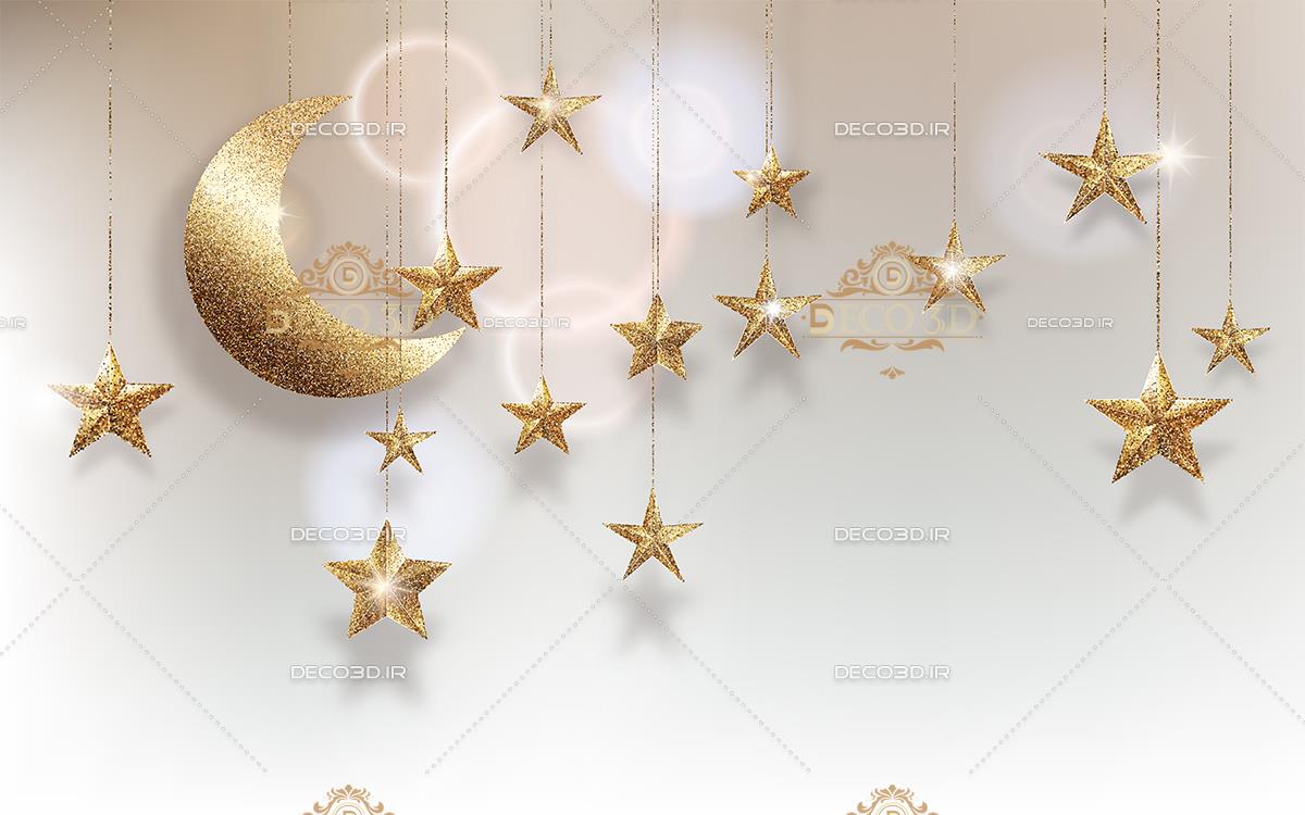 ماه و ستاره های طلایی آویزان با حلقه ها